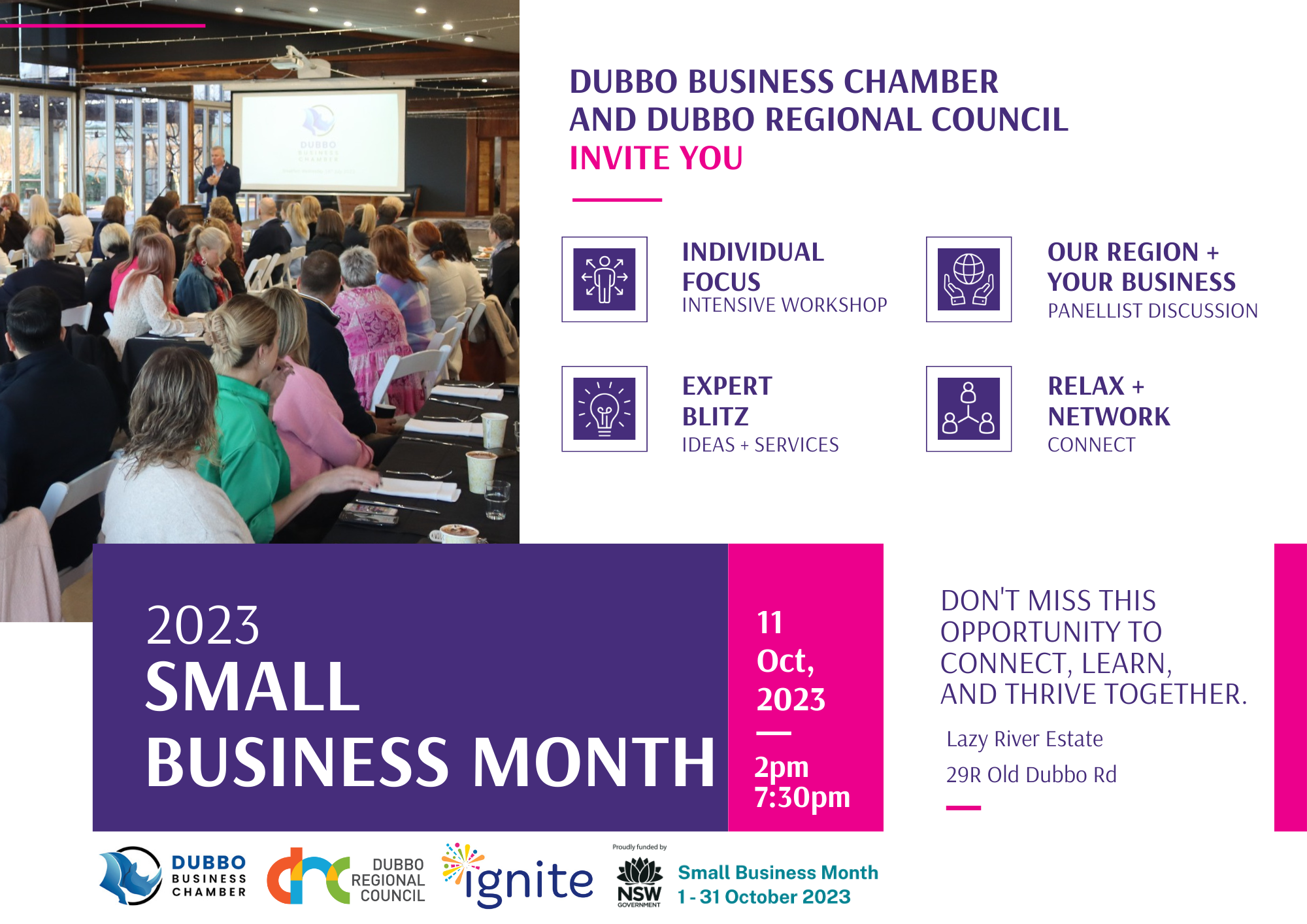 Dubbo Business Chamber and Dubbo Regional Council invite you to join us this October: